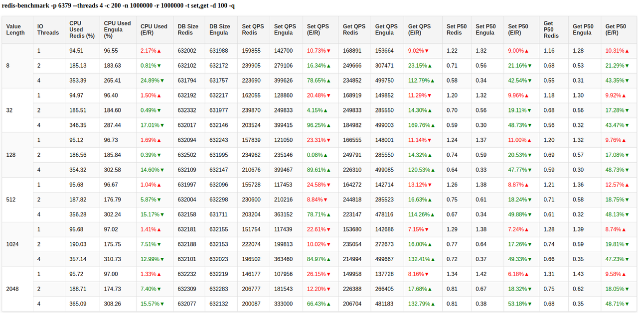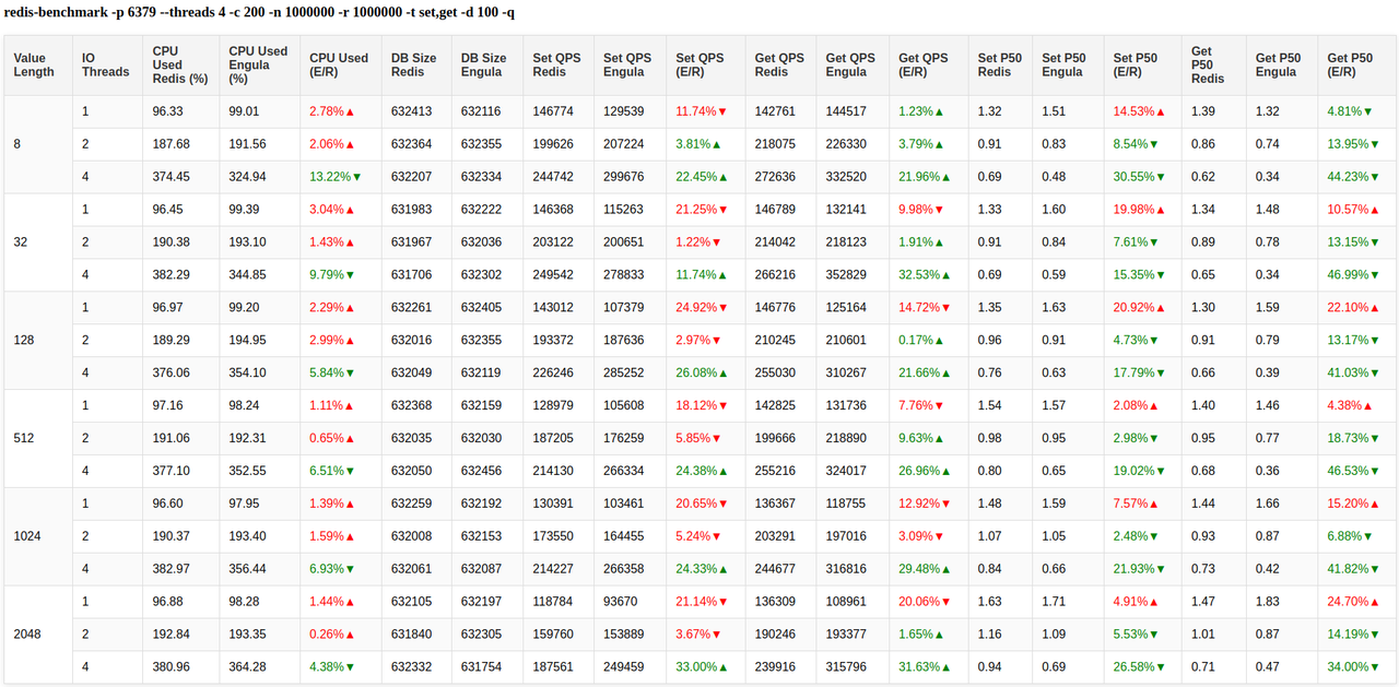 The benchmark results demonstrate Engula's performance characteristics across different hardware configurations and value sizes. Engula maintains competitive performance with Redis while providing significant memory savings and enhanced features.